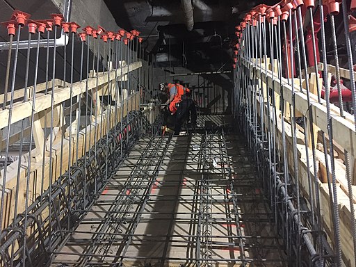 Rebar reinforcements for the stairs at the 47th Street exit from the new LIRR Concourse (New York), May 2019 by MTA Capital Construction Mega Projects, CC BY 2.0 https://creativecommons.org/licenses/by/2.0, via Wikimedia Commons