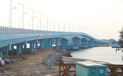 Haikou New East Bridge viewed from the southwest, Xinbu Island, Haikou, Hainan, China by Anna Frodesiak, CC0, via Wikimedia Commons