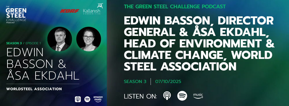 Almost two years after its launch, The Green Steel Challenge introduces the third season of podcasts by returning to its very first Season 1 guests, Edwin Basson, Director General, and Åsa Ekdahl, Head of Environment & Climate Change at Worldsteel.