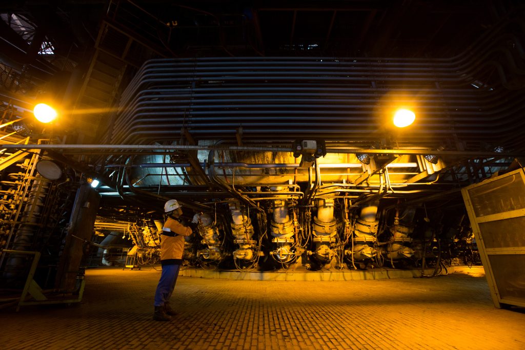 An engineer inspecting hot air injection unit in a blast furnace at POSCO Pohang Steelworks from Worldsteel Image Library