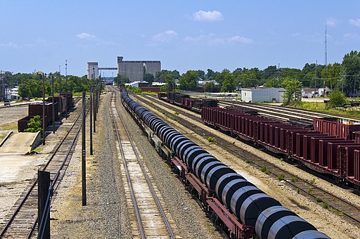 “A train carrying what seems to be an unlimited number of coils rolls into downtown Springfield, MO.” by Doug Wertman from Rogers, AR, USA, CC BY 2.0 https://creativecommons.org/licenses/by/2.0, via Wikimedia Commons