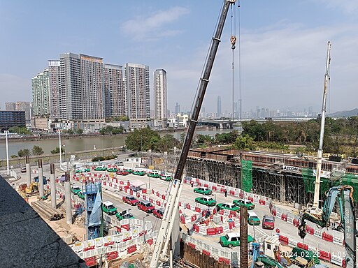 HK YLD Yuen Long 落馬洲路 Lok Ma Chau Road 建築地盤 construction site view SZ 深圳 Shenzhen 福田 Futian 裕亨路 Yuheng Road 福田口岸商業廣場 Port Commercial Plaza in February 2024by MOKZHUNG LEONIXMA, CC0, via Wikimedia Commons